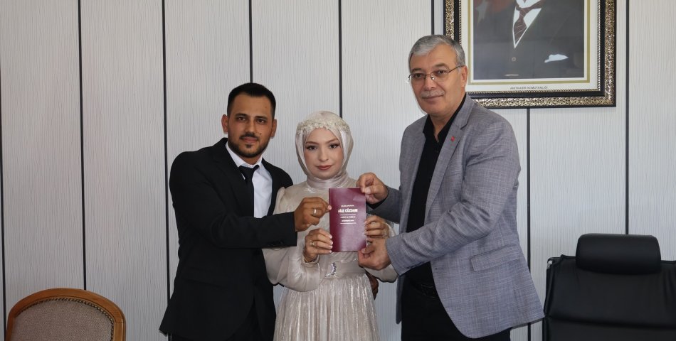 BAŞKAN MERTCAN GENÇ ÇİFTLERİN NİKAHLARINI KIYDI Belediye başkanımız sayın Mesut MERTCAN ilçemiz halkından Ramazan KILIÇARSLAN ve Hatice YAMAN çiftinin resmi nikahlarını kıydı ve gençlere bir ömür boyu mutluluklar diledi.