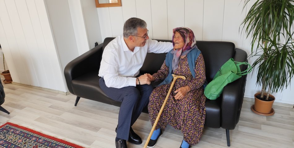 BAŞKAN MERTCAN'I MAKAMINDA ZİYARET ETTİ. Belediye Başkanı Mesut MERTCAN Öbektaş Mahallesinde bayramda ziyaret etmiş olduğu,Razman ŞENER teyze Başkan MERTCAN'ı makamında ziyaret etti.Başkan MERTCAN; Büyüklerimiz bizim rehberimizdir, eli öpülesi cefakar ve vefakar büyüklerimizi ziyaret etmek, onların hayır dualarını almak, gönüllerini almak bizleri mutlu ediyor, Razman ŞENER teyzemizin,bu mübarek günde ziyareti bizleri fazlasıyla mutlu etmiştir, gönlü güzel teyzemizin ve bütün büyüklerimizin ellerinden öpüyorum, Rabb'im sağlıklı ömürler versin dedi.